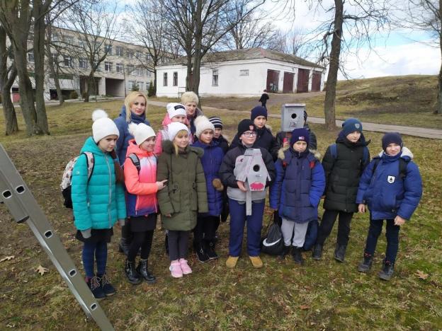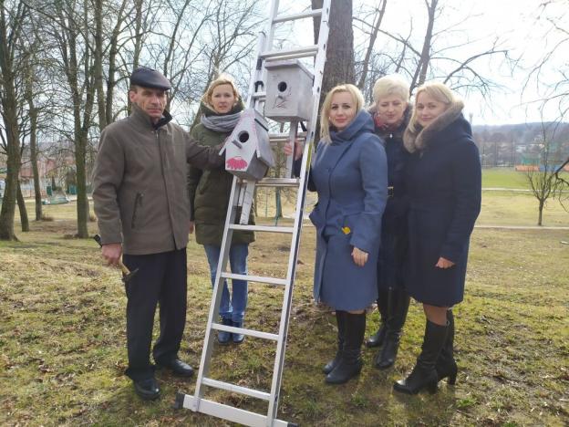 Специалисты Центра смастерили скворечники и вместе с учащимися 5 «Б» класса ГУО «Средняя школа №1» закрепили на деревьях домики для пернатых.