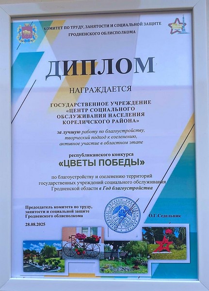 В Год благоустройства Минтруда и соцзащиты запустило масштабный конкурс «Цветы Победы», направленный на озеленение и преображение территорий социальных учреждений.Цель конкурса: создать уютные, красивые и уникальные пространства в социальных пансионатах и ТЦСОНах, вовлекая получателей услуг и сотрудников в творческий процесс.По итогам республиканского конкурса «Цветы Победы» Центр социального обслуживания населения Кореличского района награждён Дипломом за лучшую работу […]