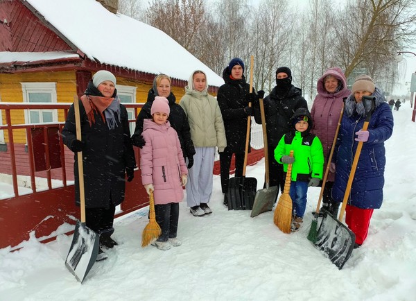 Серебряные волонтёры ЦСОН Кореличского района совместно с БРСМ принимают участие в «снежном десанте»