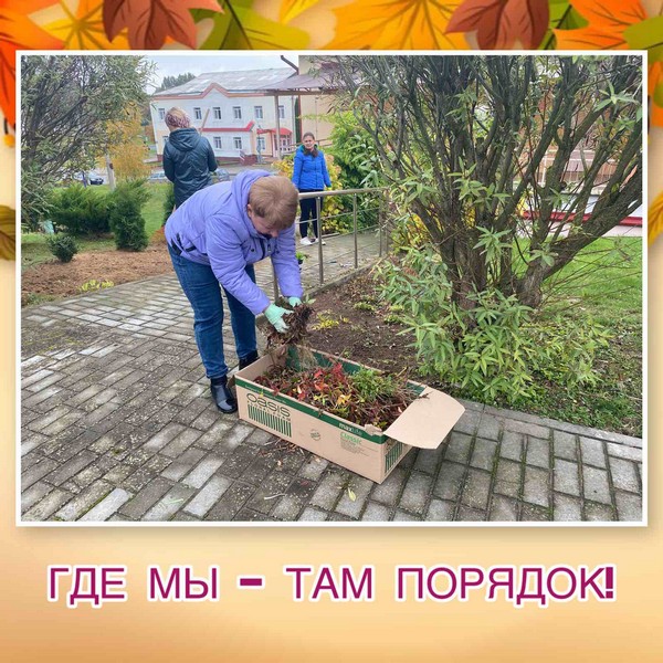 В Кореличском районе с 10 октября по 10 ноября 2025 года проходит месячник наведения порядка на земле. Сотрудники ЦСОН Кореличского района приняли активное участие в уборке территории учреждения.