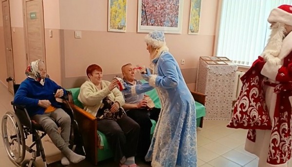 Члены волонтёрского отряда «Союз добрых сердец» ЦСОН Кореличского района совместно с РО ОО «БРСМ» поздравили с новогодними и рождественскими праздниками пожилых граждан, находящихся в Лукской больнице сестринского ухода. От всей души подарили музыкальное поздравление, а Дед Мороз и Снегурочка преподнесли сладкие подарки.