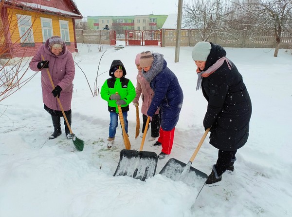 Дружная бригада двух поколений оперативно расчистила снег возле домов одиноко проживающих граждан пожилого возраста.