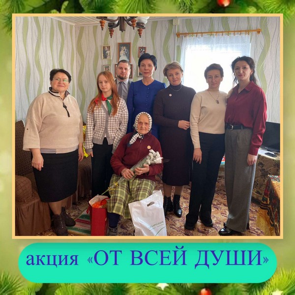 Республиканская благотворительная акция «От всей души» продолжает шагать по Кореличчине. В этот раз в рамках акции самые добрые и искренние поздравления адресовались долгожителям района: Клавдии Степановне Коралько из д. Плужины, Жук Варваре Ивановне из д.Жуки, Александру Михайловичу Борщевскому из д. Лесок и Пальмире Алексеевне Кондак из г.п.Мир.